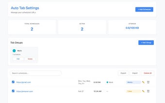 AutoTab - Scheduled URL Opener เป็นส่วนขยายของ Chrome ที่ออกแบบมาเพื่อเพิ่มประสิทธิภาพการทำงานโดยอนุญาตให้ผู้ใช้กำหนดเวลาที่จะเปิดเว็บไซต์โดยอัตโนมัติในเวลาที่กำหนด เครื่องมือนี้ตอบสนองต่อผู้ใช้ที่มักจะต้องจัดการกับงานหลายอย่าง โดยมั่นใจว่าลิงก์ที่สำคัญพร้อมใช้งานเมื่อจำเป็น ฟีเจอร์หลักประกอบด้วยปฏิทินหลายวันสำหรับการกำหนดเวลา ความสามารถในการสร้างกลุ่มแท็บที่มีการจัดสีเพื่อการจัดระเบียบที่ง่าย และการแจ้งเตือนที่ปรับแต่งได้เพื่อเตือนผู้ใช้เมื่อแท็บกำลังจะเปิด